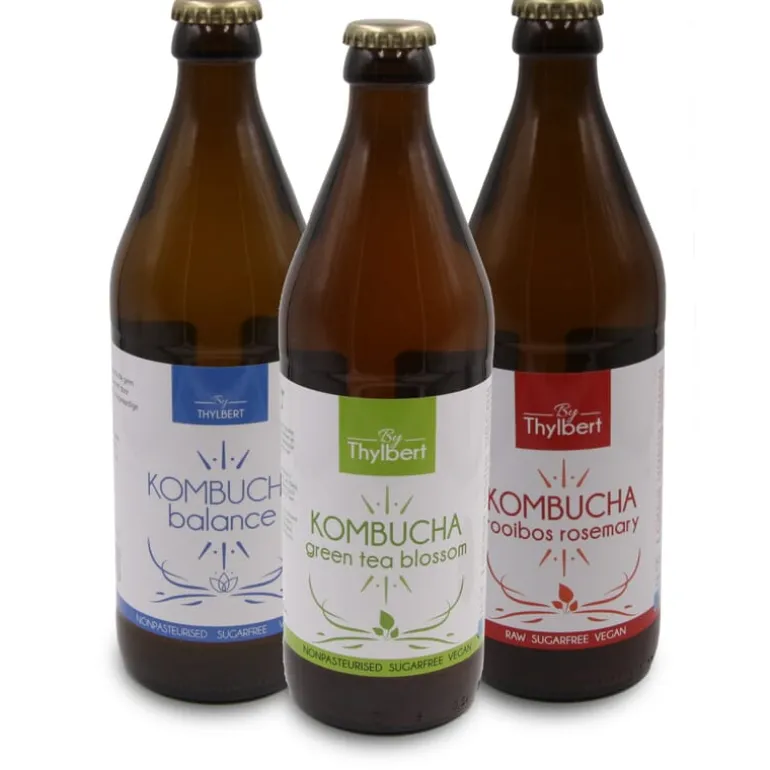 In ons kombucha assortiment kan je kiezen uit drie heerlijke smaken.