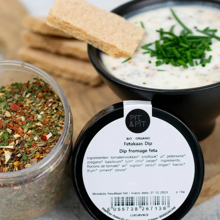 Voeg 2 theelepels van de fetakaas dip kruidenmix aan 150 ml yoghourt, kwark, vegan yoghurt of plantaardige room. Even roeren en 5 to 8 minuten laten trekken. Deze kruidenmix bevat geen zout.