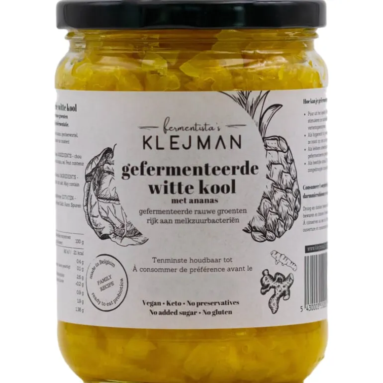 Onze gefermenteerde witte kool met ananas wordt niet gekoeld geleverd