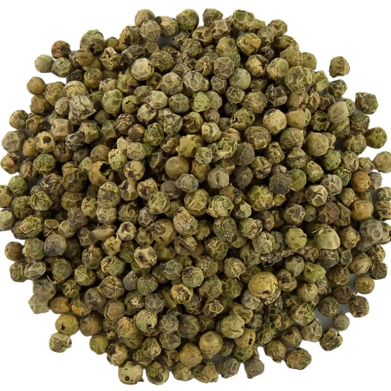 Groene peper wordt gemaakt door de peperbessen jong en onrijp te plukken. Hierdoor heeft groene peper een frisse, milde smaak. Onze hele groene peperbollen zijn 100% zuiver en vrij van additieven.