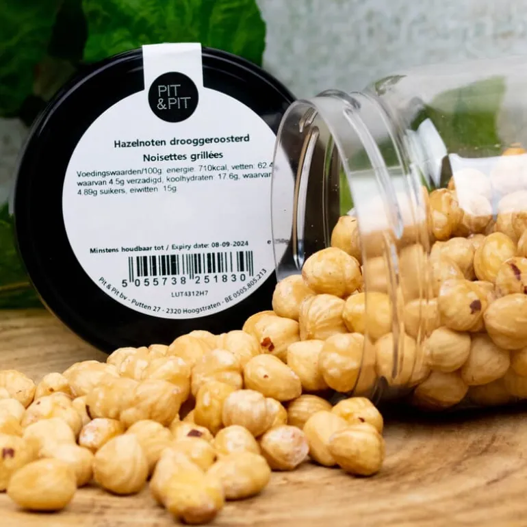 Door onze hazelnoten te roosteren krijgen ze een intensere smaak en knapperigere textuur dan de ongeroosterde hazelnoten. We roosteren onze hazelnoten droog, dus zonder olie of andere vetstof. Dankzij het roosteren komt het bruine vliesje van de hazelnoten gemakkelijk los en krijg je gepelde, witte hazelnoten.