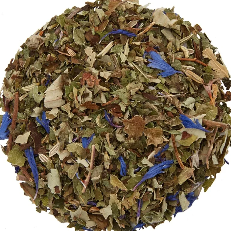 Melisse, bessenblad, koriander, venkel, korenbloem, chili, kardemom. 100% biologisch, zonder toegevoegde aroma’s.