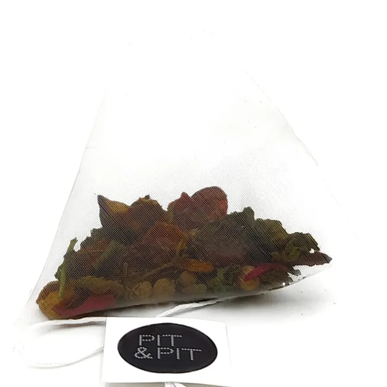 Onze theezakjes bestaan uit 100% natuurlijke vezels afkomstig van GMO-vrije mais, waardoor ze composteerbaar zijn. Gezondere thee in je kopje, minder plastic in het milieu.