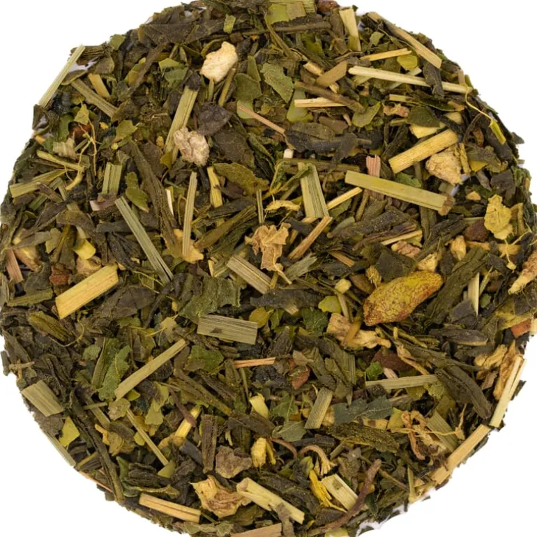 Groene thee* (Sencha*, Matcha*), gember*, brandnetelblad*, mate*, citroengras*, kaneel*, citroenolie*, pepermunt*, kurkuma*, gojibessen*, chili*, cayennepeper*, muntolie*(*), van gecertificeerde biologische landbouw