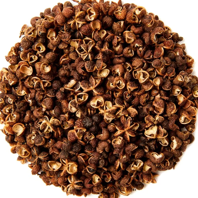 Mae Khan peper is een valse peper uit de Zanthoxylum familie. Deze peper heeft een fruitig aroma van mandarijn en gerookte thee. Ma Khaen peper zorgt voor een lichte tinteling op de tong en lippen. Onze hele gedroogde Ma Khaen peper is 100% zuiver en vrij van toevoegingen.