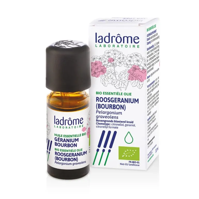 De roosgeranium etherische olie van Ladrome is 100% zuiver met bourbon roosgeranium uit biologische teelt. De ‘bourbon’ geranium behoort tot de beste geraniumoliën. Het heeft een populaire geur die te omschrijven is als zoet en sterk naar rozen geurend. Roosgeranium is goed te mengen met etherische olie van patchouli, lavendel, wilde roos, jasmijn, basilicum, bergamot, citroen, pompelmoes, petit grain en sinaasappel.
