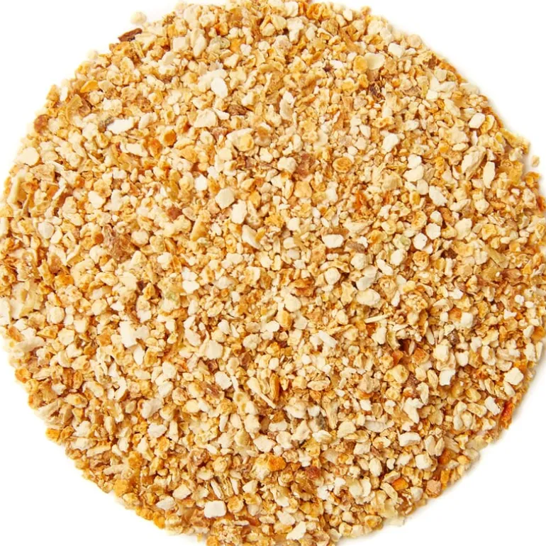 Onze sinaasappelschil is gedroogd en dus erg geconcentreerd. Gebruik 1/3 van de gevraagde hoeveelheid geraspte sinaasappelschil in een recept.