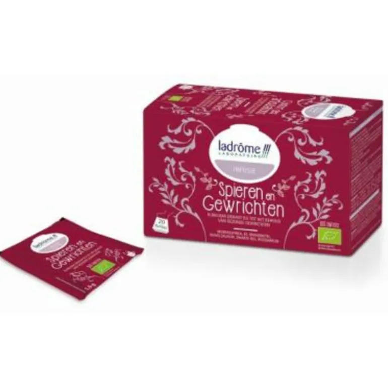 De 7 planten in Ladrome kruideninfuus spieren & gewrichten zijn afkomstig uit de biologische landbouw. De kruidenmengeling is 100% natuurlijk, zonder toevoeging van kunstmatige aroma’s en suiker.