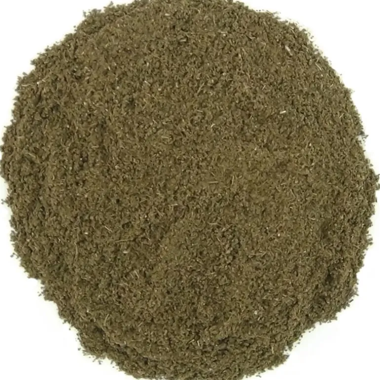 Zuivere gemalen tulsi of holy basil bladeren. Vrij van toevoegingen.