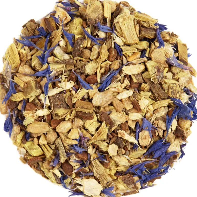 Zoethout, gember, koriander, anijs, kaneel, korenbloem. 100% bio, zonder toegevoegd aroma.