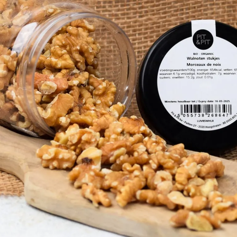 Geniet van een heerlijke gezonde snack met onze walnoten stukjes! Deze rijke smaak past bovendien perfect bij kaasplankjes, vooral in combinatie met geitenkaas en gedroogde vijgen. Je kan de walnoten ook fijner malen en als kruimeltopping gebruiken op taarten, desserts of yoghurt.