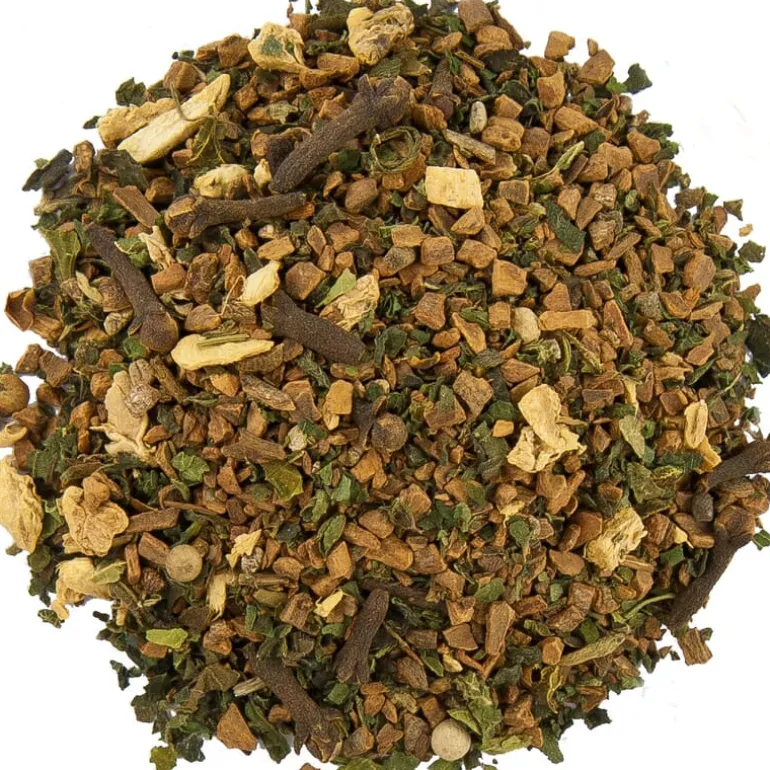 Kaneel, gember, brandnetelblad, kruidnagel, braamblad, kardemom zaadjes, witte peper.