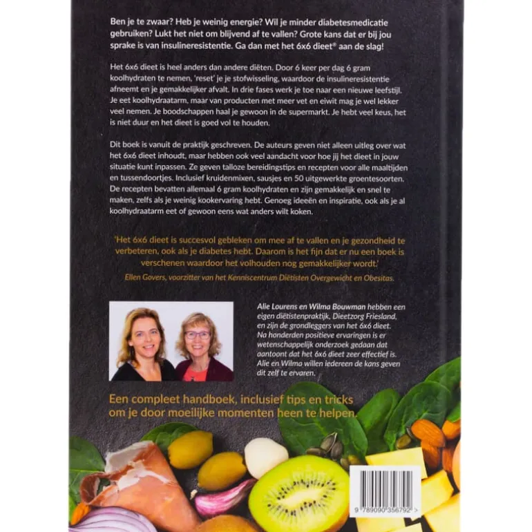 Alie en Wilma willen iedereen de kans geven dit zelf te ervaren, daarom hebben ze dit boek geschreven. Het 6×6 dieet® pakt de oorzaak van het overgewicht aan, de insulineresistentie. Je reset je stofwisseling met 6x per dag 6 gram koolhydraten. De effectiviteit is wetenschappelijk aangetoond.
