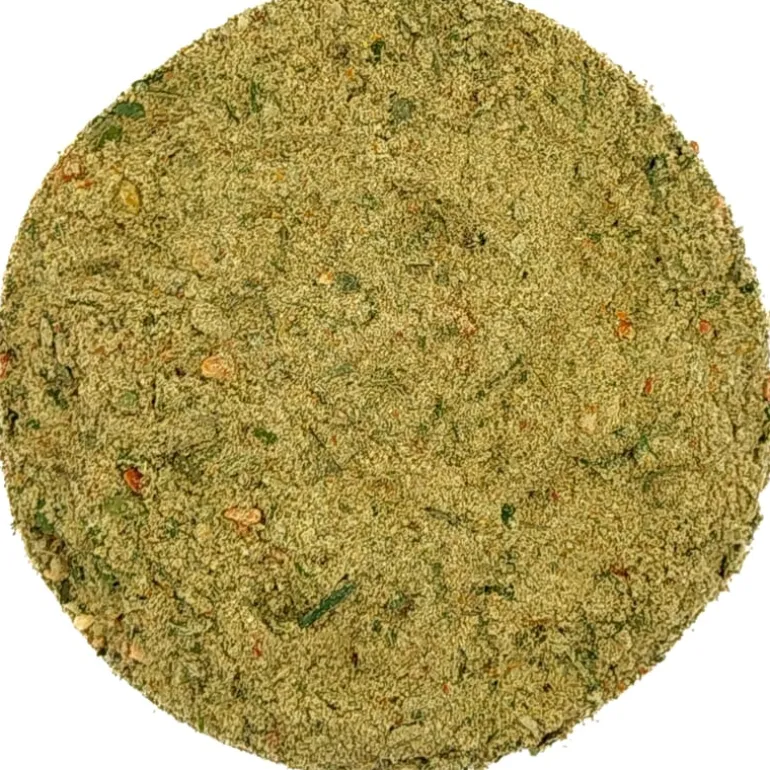 Wortel, knolselder, uienpoeder, lavas, dadelpoeder, tomaten, peterselie, groene kool, koolmix, bieslook, paprika, karwij, broccoli, citroen, knoflookpoeder, oregano, piment, koriander, kurkuma, venkel, fenegriek, gember, kaneel – alles van biologische teelt.
