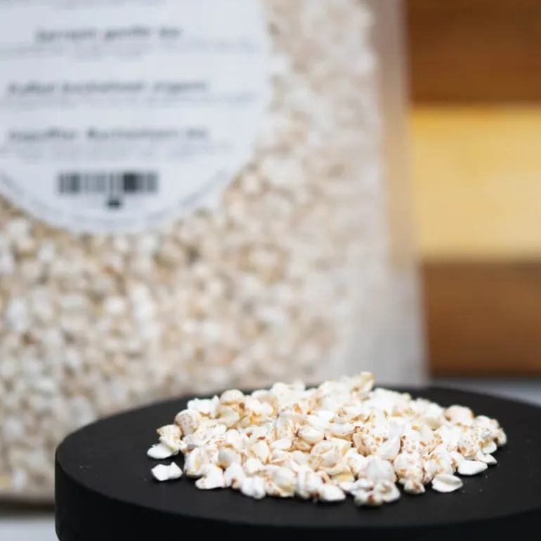 Onze gepofte boekweit is volledig biologisch en vrij van toevoegingen. In een grote ketel met een klein beetje water wordt het graan onder grote druk gebracht tot de boekweitzaden gaan poffen. Hierdoor wordt elk korreltje tot wel vier keer zo groot!