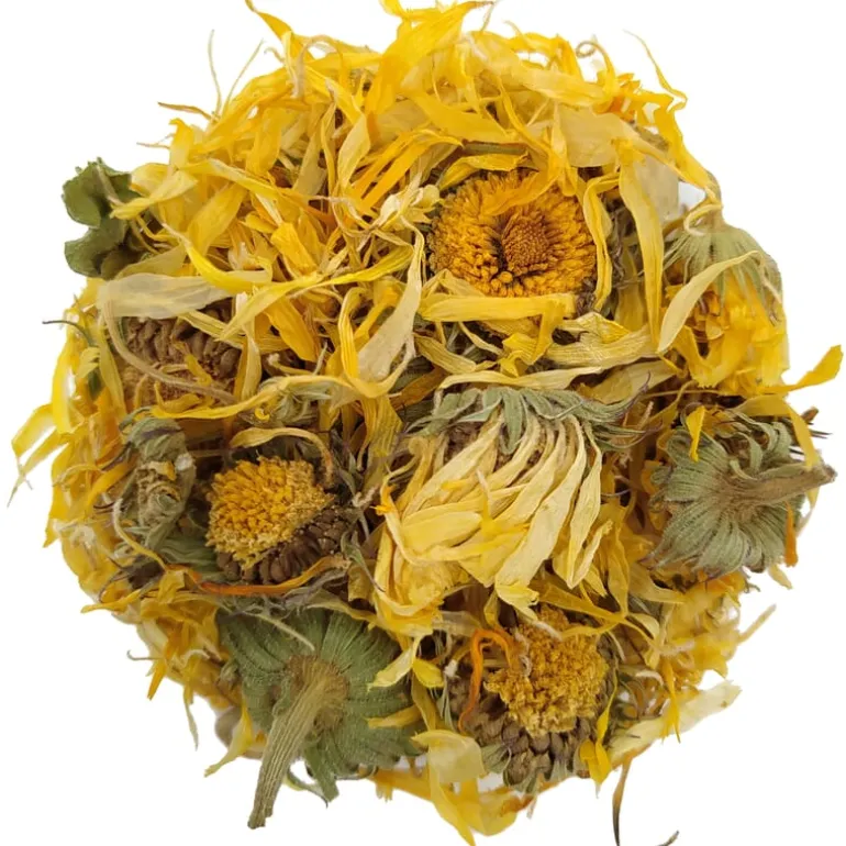 Onze biologische goudsbloem is 100% zuiver en vrij van additieven. Deze goudsbloem is afkomstig uit gecertificeerde biologische landbouw.