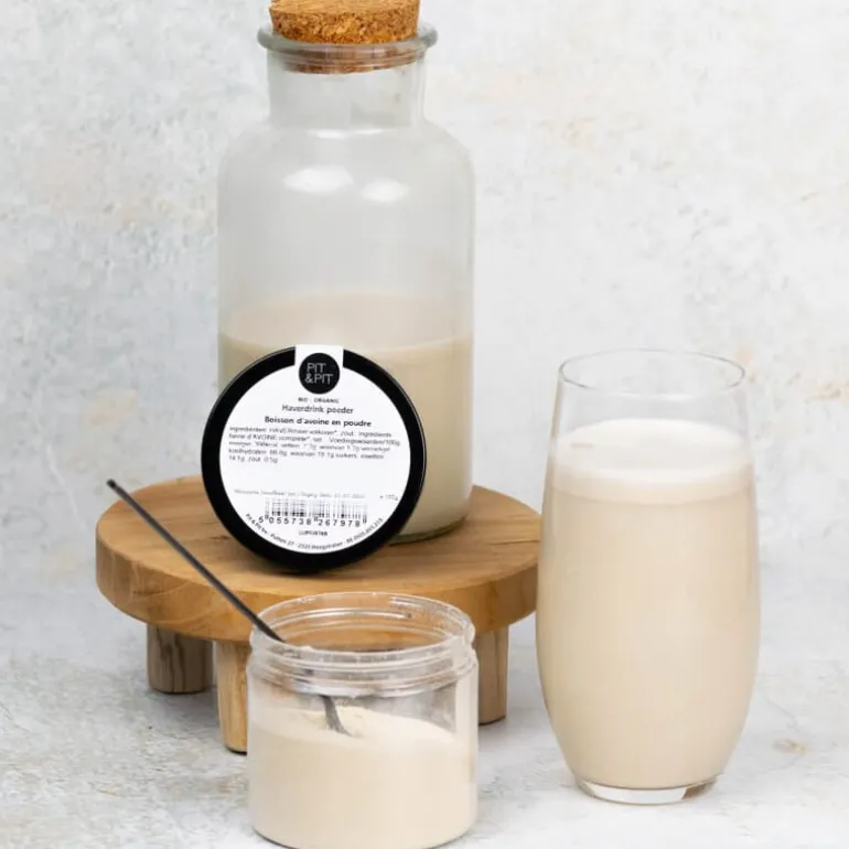 Met Pit&Pit biologisch haverdrink poeder maak je zelf haverdrink in minder 2 minuten: je weegt 100 gram haverdrink poeder af, je voegt 900 milliliter water toe en je schudt flink gedurende 15 seconden. Al klaar. Al lekker!
