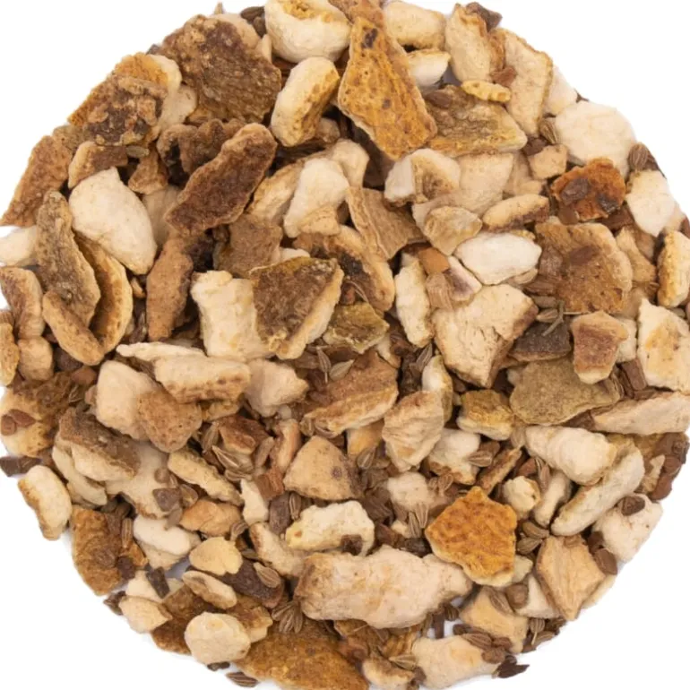 Verfijnde specerijen worden gecombineerd met sinaasappelschil, zonder enige aroma’s, zelfs geen natuurlijk aroma’s!