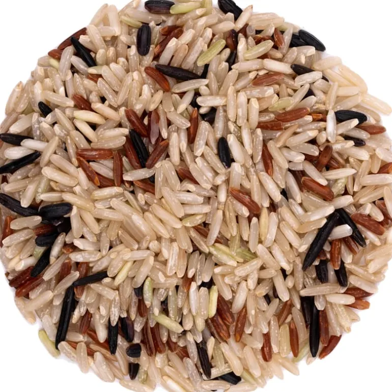 Langkorrel rijst*, rode rijst*, zwarte rijst*, wilde rijst*, (*) van biologisch gecertificeerde landbouw
